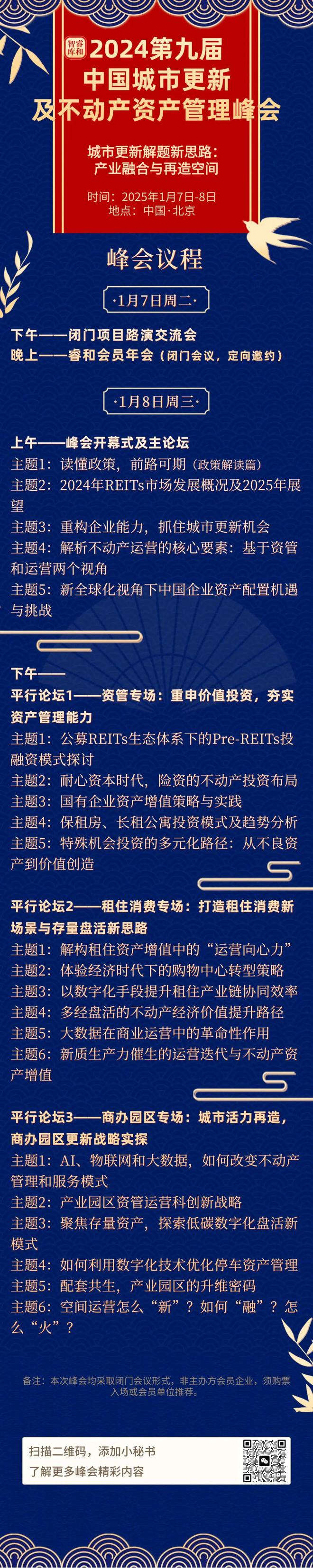 2024-11-28稳住房地产同时加大化债力度;以更宽松的财政政策和货币政策为市场注入新活力;通过REITs、上市公司并购重组激活资本市场,推动产融结合。 市场层面,价格基本见底:大宗交易市场里,新主体积极在底部吸货;各地政府大力倡导“耐心资本”,为产业升级注入发展动力,带动城市更新。 城市更新及存量盘活有了初步的模型:以一二线城...